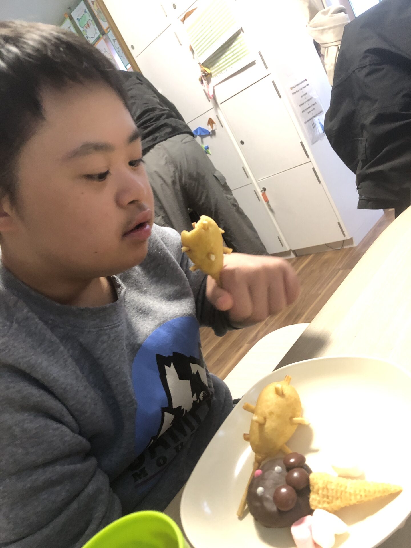 最後は『金棒ドッグ』と『鬼チョコパイ』のおやつを食べました。美味しかったね😋
